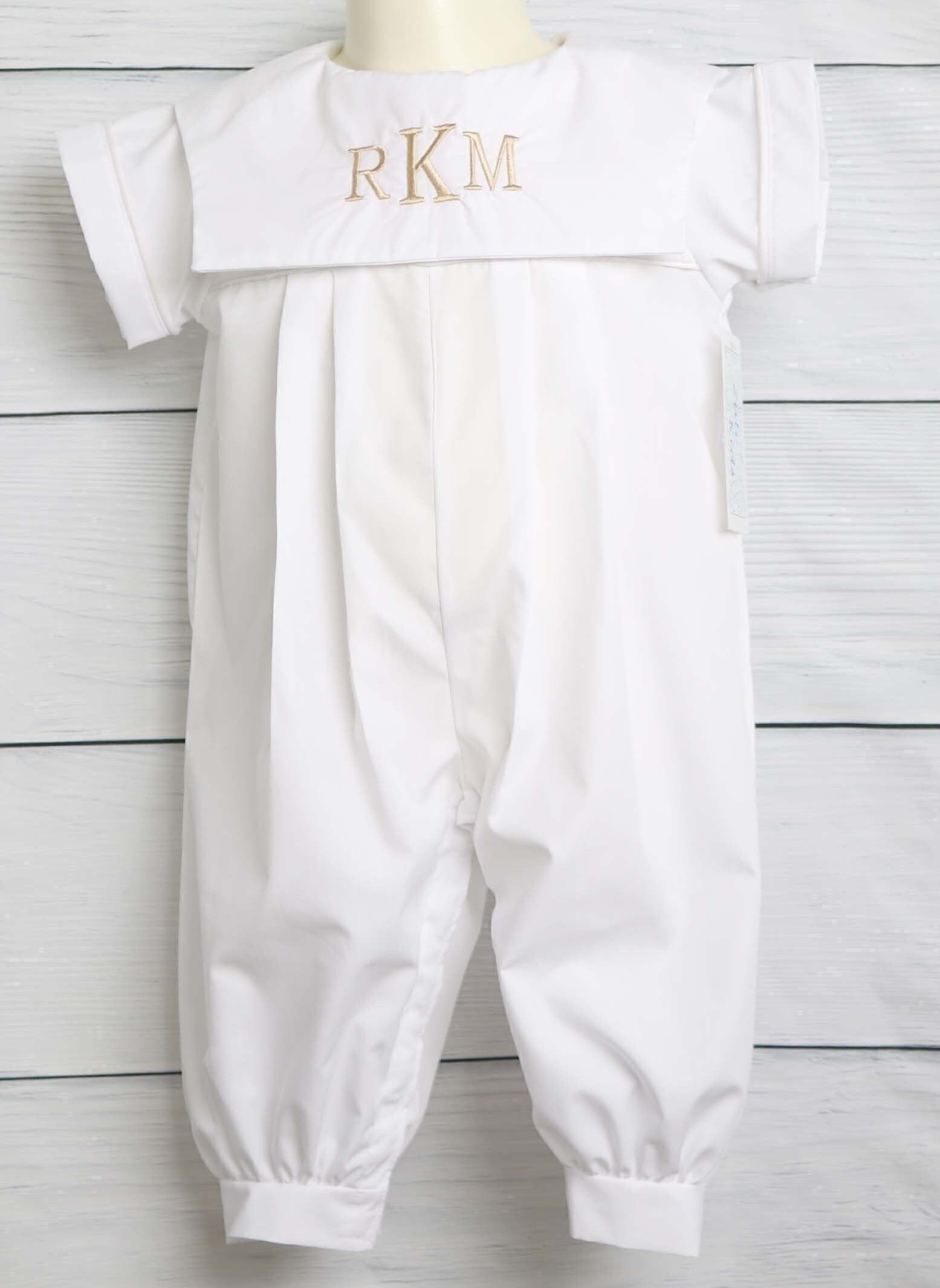 He will look amazing in a personalized boys christening outfit by Zuli Kids. Boys baptism outfit is white supreme broadcloth and is piped in white at the waist and sleeves. It is also available personalized with your babies monogram. Matching Sister Outfit available in separate listing.