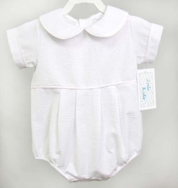 He will be ready for his big day in a baby boys baptism outfits by Zuli Kids. Baby boy christening outfit is white seersucker with white seersucker collars and matching white seersucker piping. and can come with our without monogram or name.
