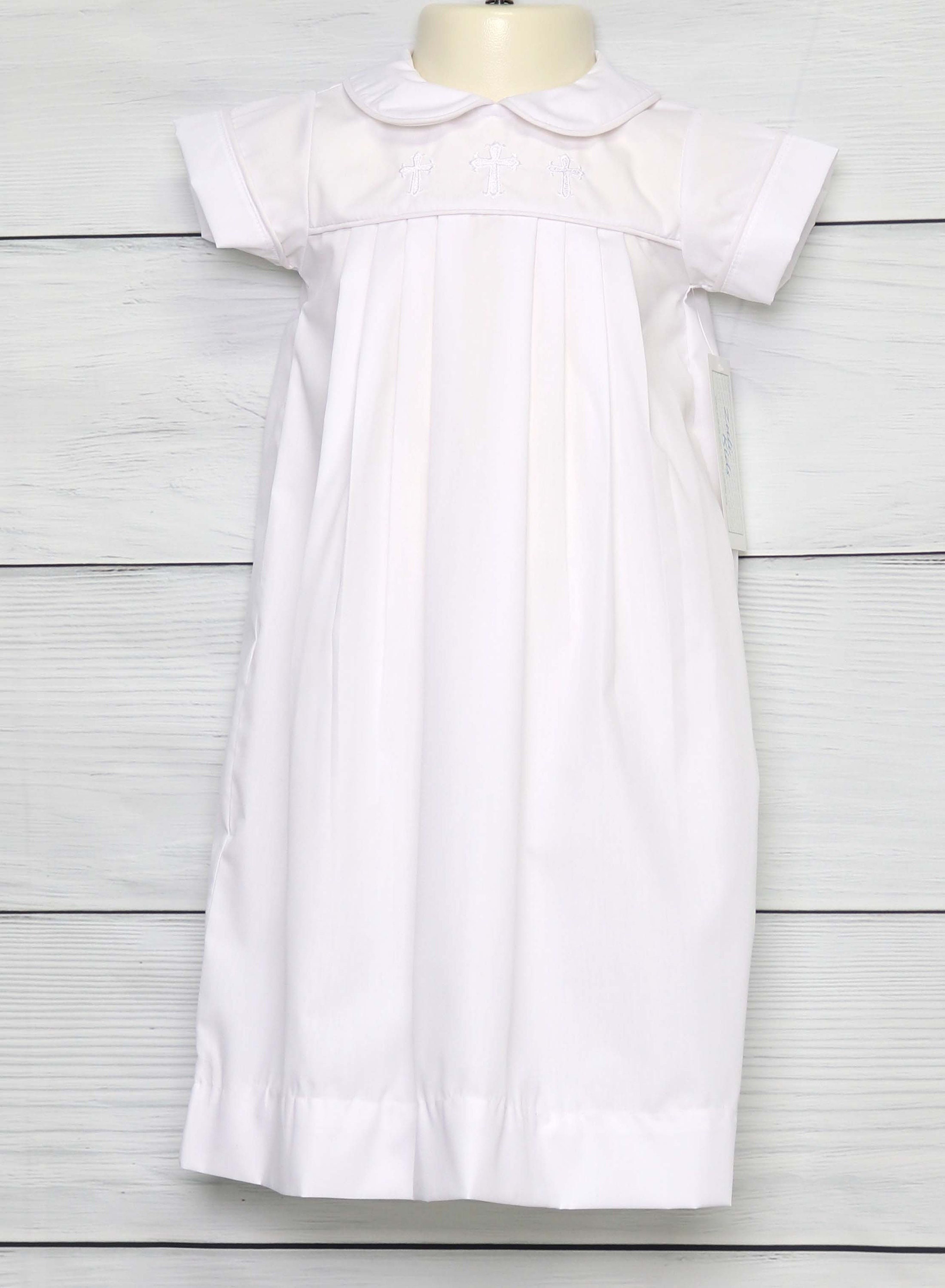 He will look stunning in an heirloom christening gown by Zuli Kids. Boy christening gown is white embroidered with white crosses. Makes a special personalized baby shower gift for twin boys or twin girls. Other color crosses available ( khaki, blue, pink) Can come in short or long sleeves.